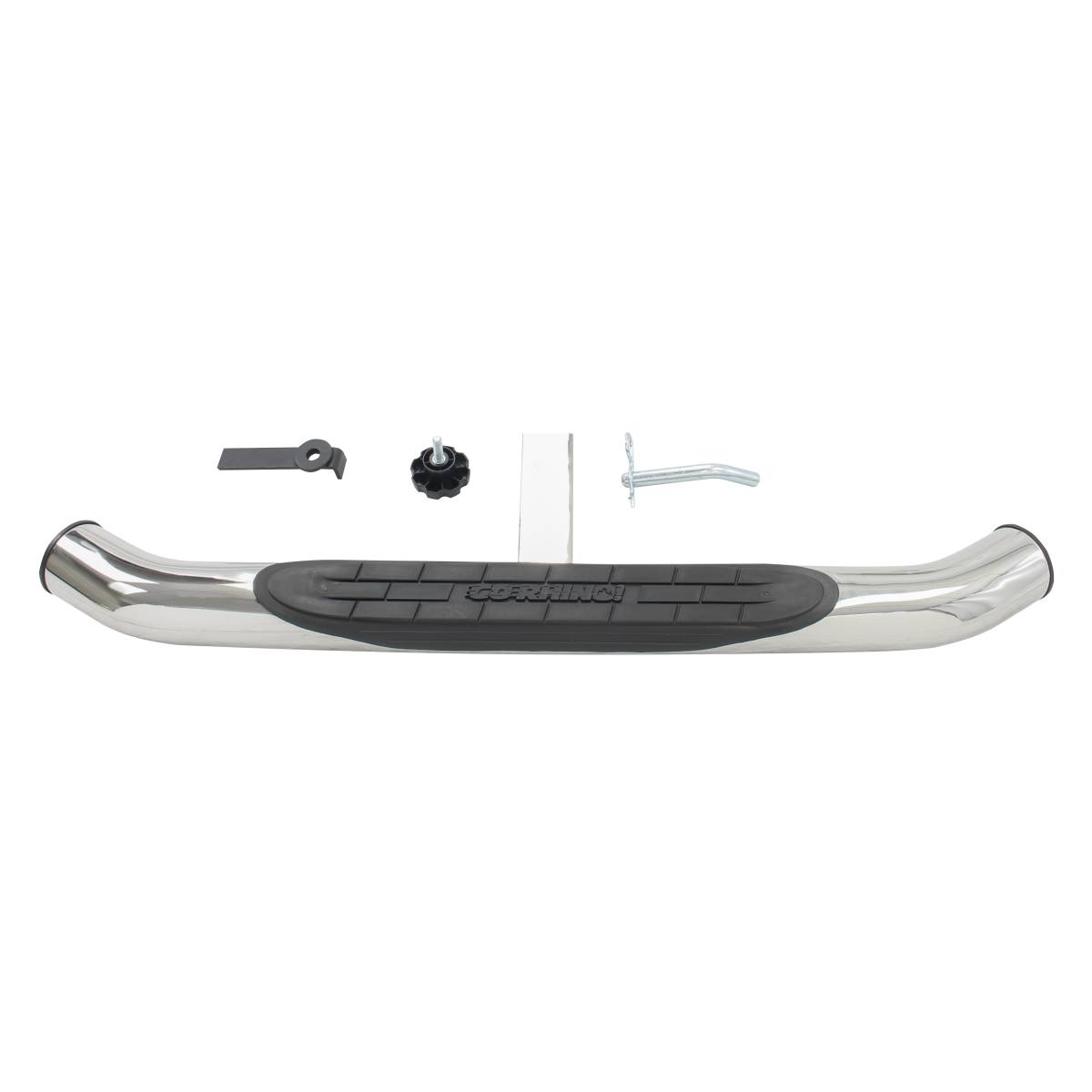 Provides easy rear step access to a truck bed, SUV and/or roof rack. Fits 2" receivers. Offers protection to vulnerable, molded bumpers in the event of a collision. Includes a convenient storage bag. Anti-rattle device included. Easily installed within minutes.