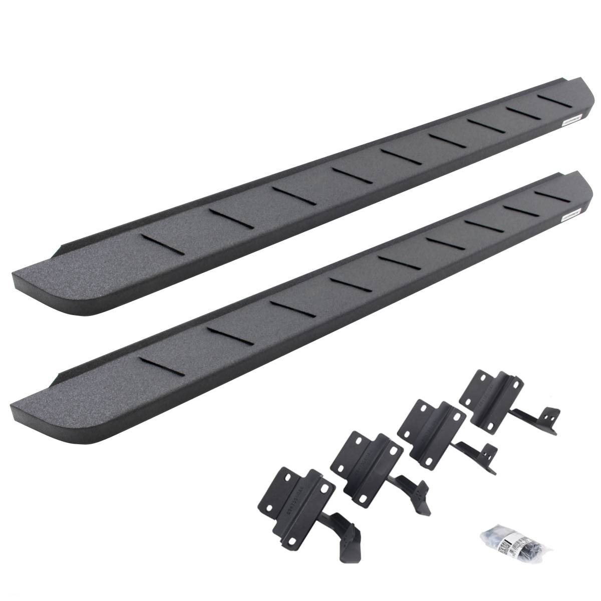 The legendary RB Series of cab length running boards from Go Rhino will make your truck, Jeep or SUV stand apart from the crowd. With an aggressive, yet stylish appearance, these bolt-on truck side steps take their visual inspiration from the Ford Raptor but are made for more than just looks. The RB10 running boards features a generous step area with Raptor-style louvers for maximum traction. The corrosion-resistant 16-gauge zinc coated steel steps are mounted high and tight, giving them plenty of clearance for off-road adventures, and are strong enough to support hundreds of pounds of weight. The welded, boxed end design is offered in textured black powder coat or rugged, bedliner coating. Hardware and brackets are included and installation on most vehicles will not require drilling. RB10 Running Board Kits come with a Limited Lifetime warranty on materials and construction and a 5 year warranty on the Protective Bedliner Coating