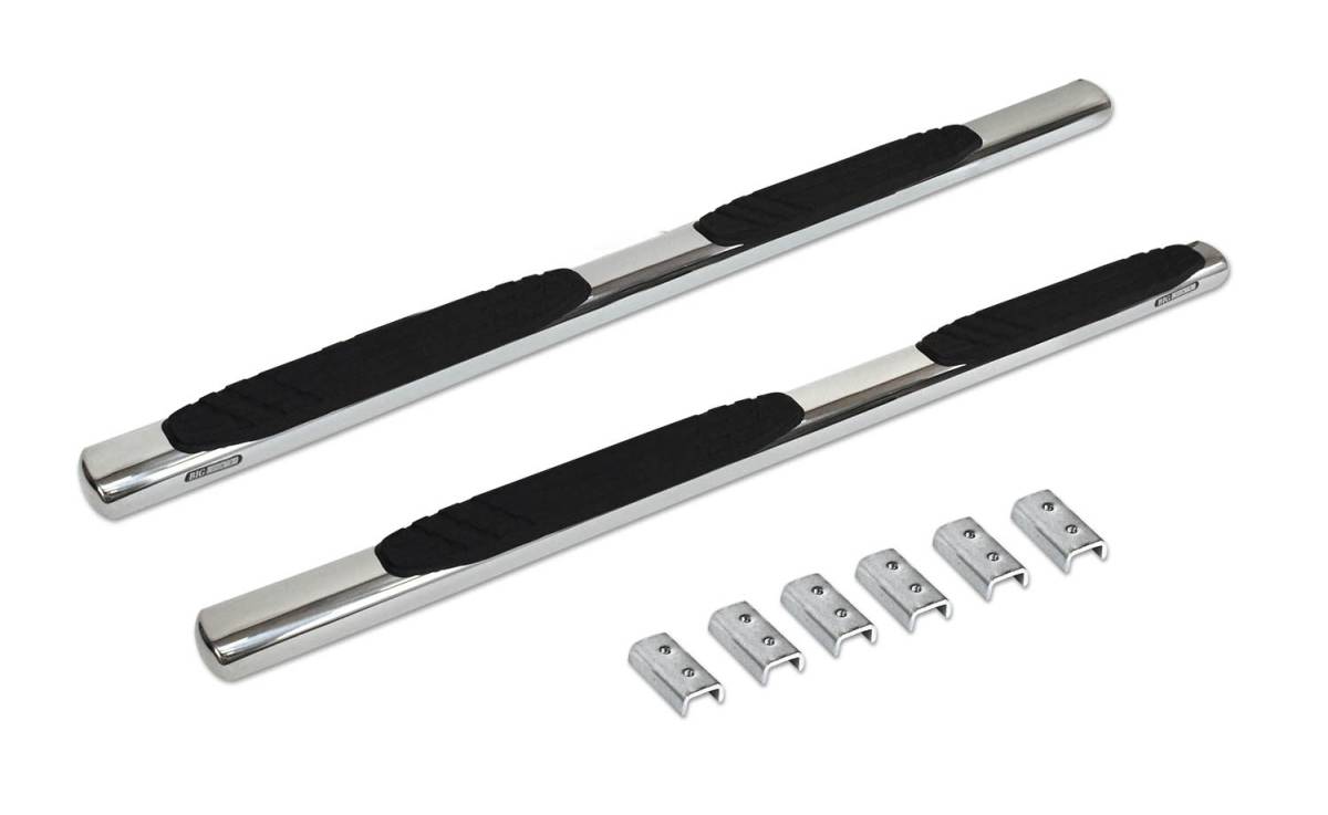 The 4" OE Xtreme Side Steps model #640087PS (STEP BARS ONLY) that gives the factory look to your truck, CUV or SUV. The sleek, low profile side steps add style to functionality and feature Go Rhino's signature SuperGrip™ rubber step pads, which maintain a non-slip stepping surface even when wet. The model #640087PS OE Xtreme side steps come without with mounting brackets. Step bar installation is simple with no cutting or drilling required on most vehicles. 4" OE Xtreme Side Steps come with a Limited Lifetime warranty on materials and construction and a year warranty on the Stainless Steel finish.