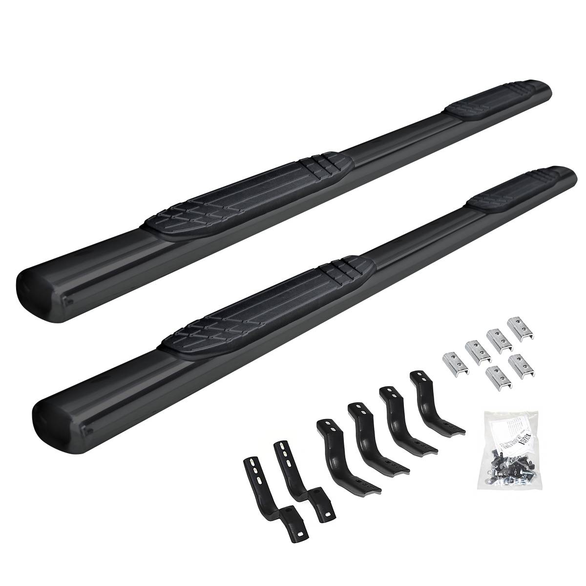 The 4" OE Xtreme Side Steps model #684415587T is a Complete Kit including the running boards and mounting kit that gives the factory look to your truck, CUV or SUV. The 4" wide oval side step bars feature non-slip step pads to allow safer stepping in and out of your truck or SUV, and a convenient U-Channel mounting system and replaceable end caps for a great OE style side step at a great price. The model #684415587T OE Xtreme side steps come with mounting brackets. Step bar installation is simple with no cutting or drilling required on most vehicles. 4" OE Xtreme Side Steps come with a Limited Lifetime warranty on materials and construction and a year warranty on the Textured Black finish.