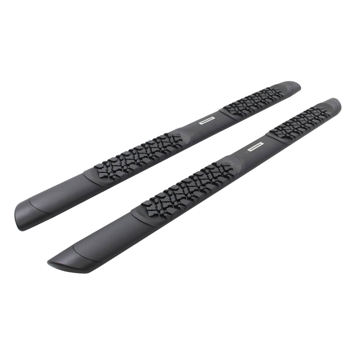 The V-Series V3 side steps with 74" running boards bring on a sleek, aerodynamic look, the convenience of corrosion-resistant aluminum and strength based on quality engineering and design. Finished with a textured black powder coating, the 5" ellipse-shaped running boards feature anti-slip polymer step pads with a multi-dimensional tire tread pattern so rain, snow and slush easily drain off and reduce the risk of slipping while stepping up into your vehicle. Each V-Series V3 running board is fortified with a dual core full length extrusion allowing the board to support up to 300 lbs per step pad (600 lbs per side for 4-door vehicles). The Go Rhino V-Series V3 Side Steps come with a Limited Lifetime warranty on materials and construction and a 5 year warranty on the Textured Black Finish.