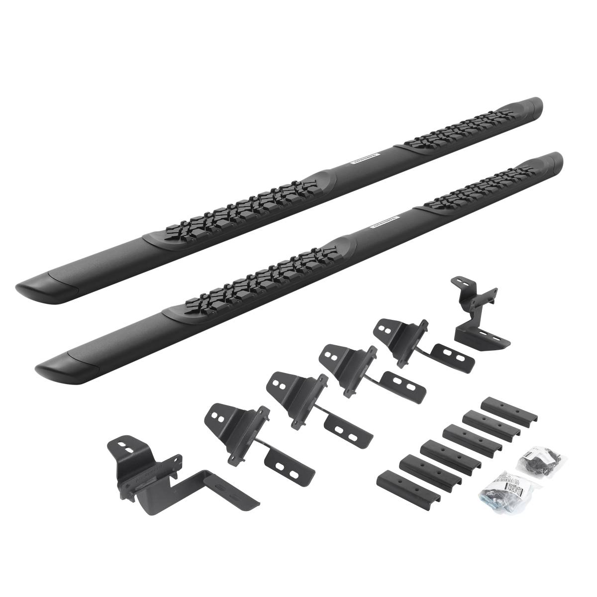 The V-Series V3 side steps with 68" running boards bring on a sleek, aerodynamic look, the convenience of corrosion-resistant aluminum and strength based on quality engineering and design. Finished with a textured black powder coating, the 5" ellipse-shaped running boards feature anti-slip polymer step pads with a multi-dimensional tire tread pattern so rain, snow and slush easily drain off and reduce the risk of slipping while stepping up into your vehicle. Each V-Series V3 running board is fortified with a dual core full length extrusion allowing the board to support up to 300 lbs per step pad (600 lbs per side for 4-door vehicles). The Go Rhino V-Series V3 Side Steps come with a Limited Lifetime warranty on materials and construction and a 5 year warranty on the Textured Black Finish.