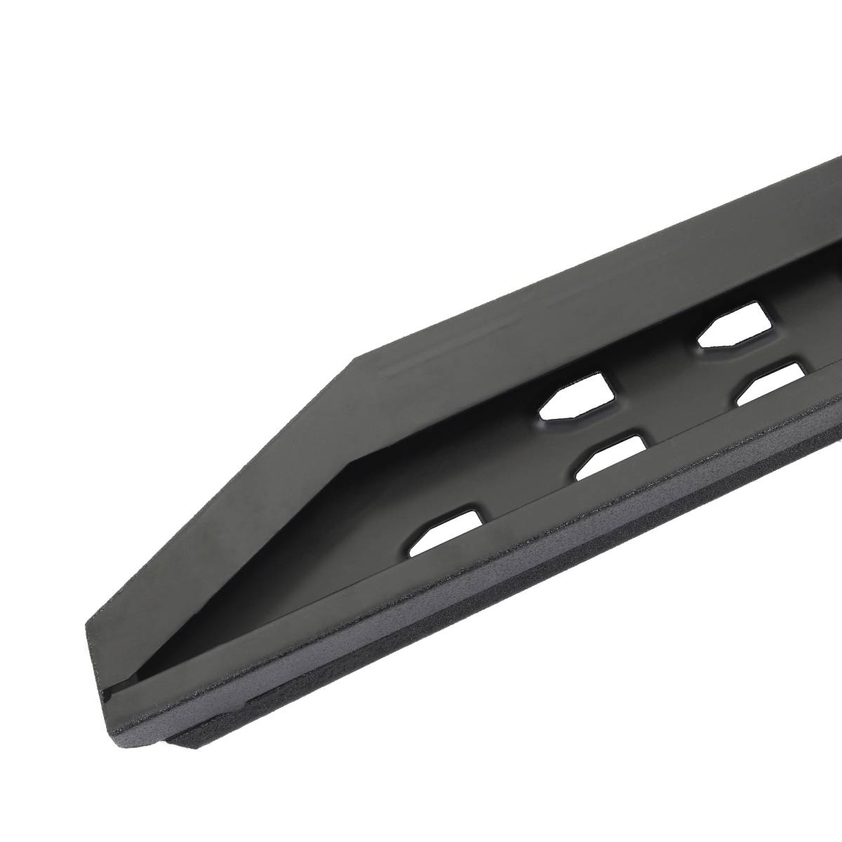 The RB20 Slim Line Running Boards offer the same heavy duty toughness as the original RB Series, but with a slimmer design that fits tighter along the cab for increased ground clearance when off-roading. Constructed from 16-gauge zinc-coated galvanized steel, the Raptor-inspired boards were built to protect your panels from flying debris while providing a full-length step platform. The modern, bullet-stamped design is 5 1/2 inches across at its widest point (compared with 7 1/2 inches of the original RB20) and are offered in cab-length sizes that fit most popular trucks, Jeeps and SUVs. The RB20 Slim Line come with a Limited Lifetime warranty on materials and construction and a 5 year warranty on the Bedliner Finish.