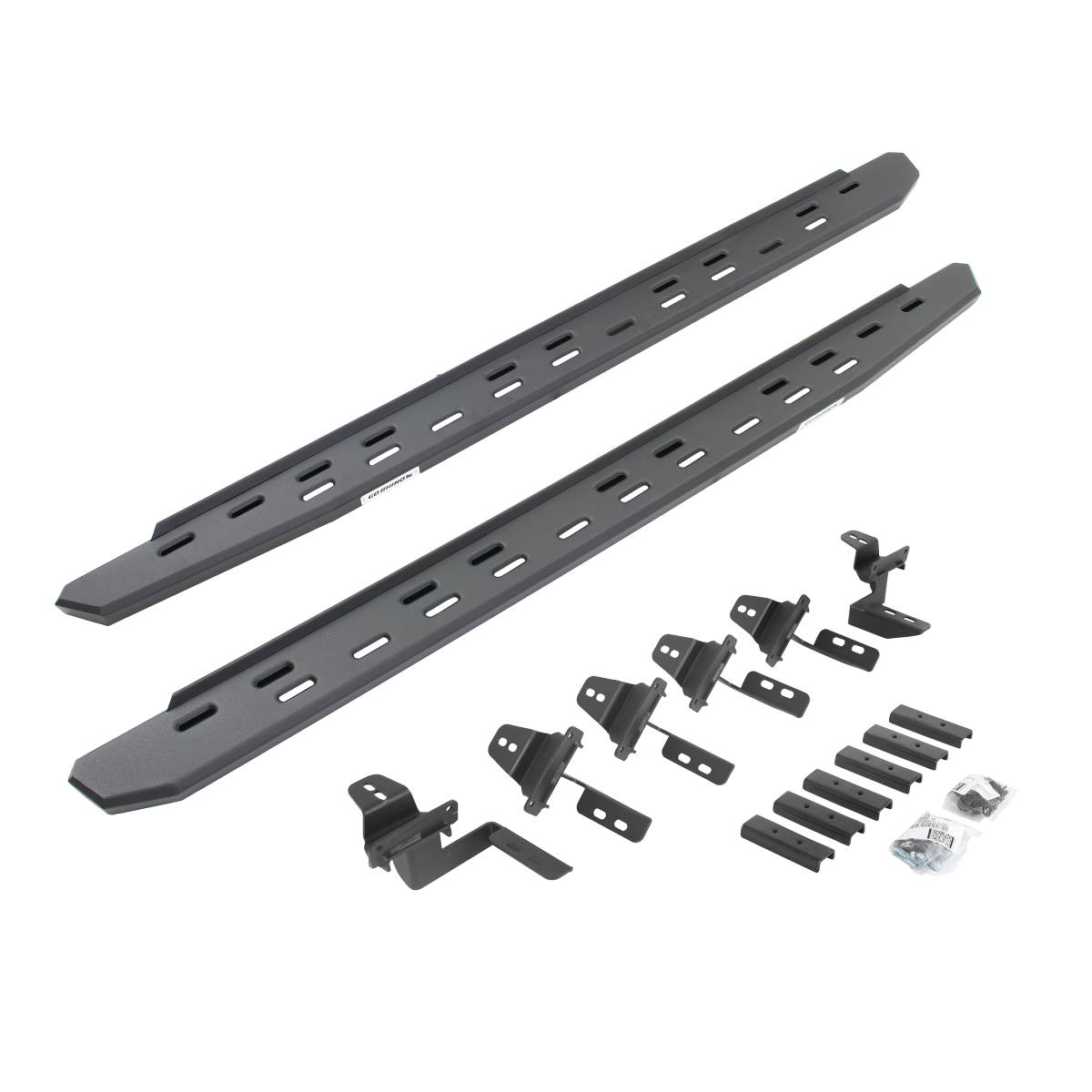 Meet the third edition of the legendary Go Rhino RB Series of running boards: the RB30 Slim Line Running Boards. The RB30 is the next generation of Raptor-inspired design that will make your truck, Jeep, Bronco or SUV stand out from the crowd. With its aggressive, stylish appearance, this cab-length, bolt-on side step provides maximum traction and features an open flow-through design that prevents mud, ice, and snow from accumulating. The RB30 Slim Line Running Board offers the same heavy duty toughness as the original-width RB30, but with a slimmer design that fits tighter along the cab for increased ground clearance when off-roading. The RB30 Slim Line is 5” wide for most its length before it tapers (compared to 7” wide for the original-width). The corrosion-resistant 16-gauge steel step mounts tightly to factory mounting points along the lower rocker panel and it’s strong enough to support 300 lbs. per stepping surface for 600 lbs. per board. All RB Series Running Boards are available in Textured Black Powder Coat or Protective Bedliner finish, made in North America and offer a limited lifetime warranty against manufacturer and material defects, with a 5-year warranty on the finish.