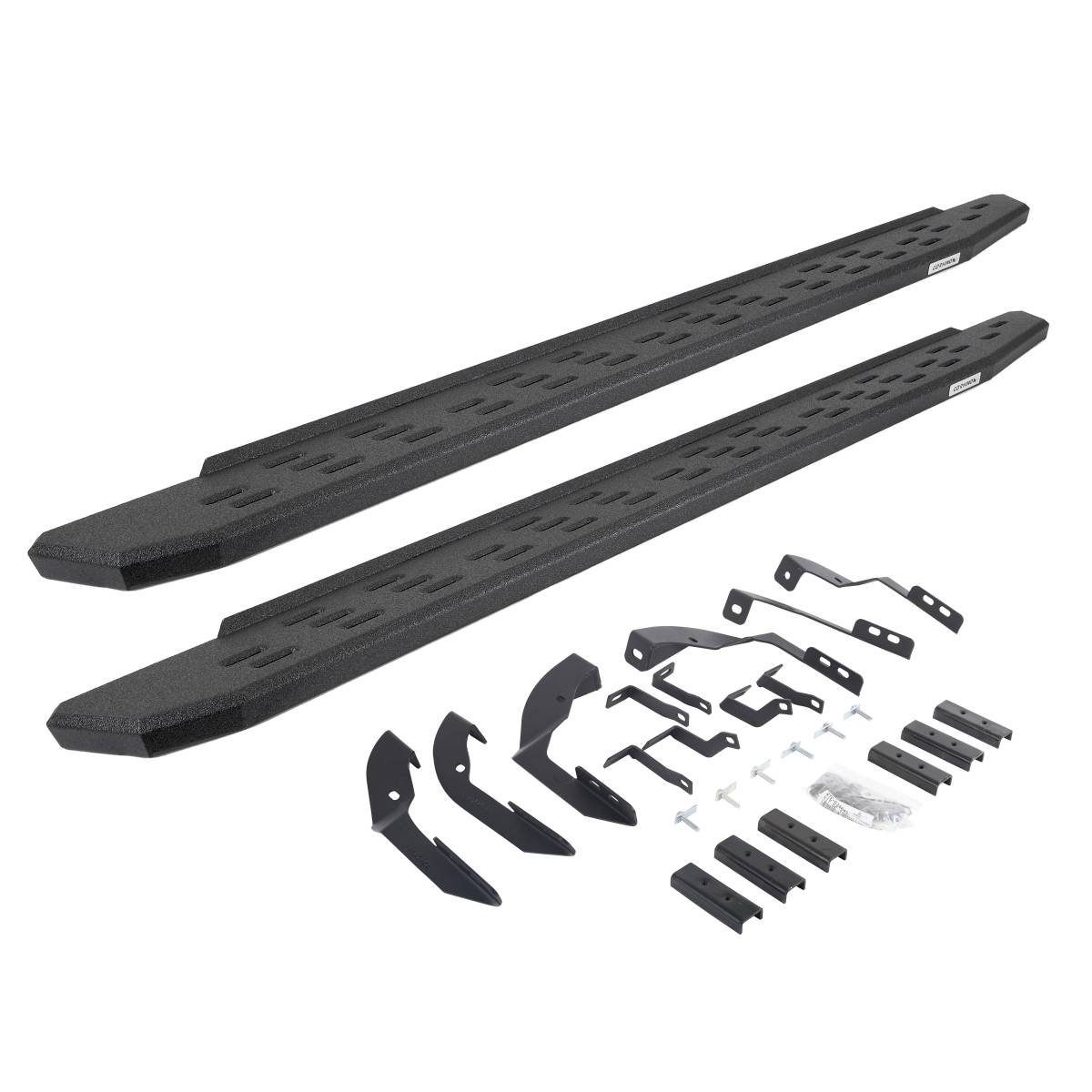 Meet the third edition of the legendary Go Rhino RB Series of running boards: the RB30. The RB30 is the next generation of Raptor-inspired design that will make your truck, Jeep, Bronco or SUV stand out from the crowd. With its aggressive, stylish appearance, this cab-length, bolt-on side step provides maximum traction and features an open flow-through design that prevents mud, ice, and snow from accumulating. The corrosion-resistant 16-gauge steel step mounts tightly to factory mounting points along the lower rocker panel, providing plenty of clearance for off-roading, and it’s strong enough to support 300 lbs. per stepping surface for 600 lbs. per board. The RB30 Running Board is 7” wide for most its length before it tapers (compared to 5” wide for the Slim Line version). All RB Series Running Boards are available in Textured Black Powder Coat or Protective Bedliner finish, made in North America and offer a limited lifetime warranty against manufacturer and material defects, with a 5-year warranty on the finish.