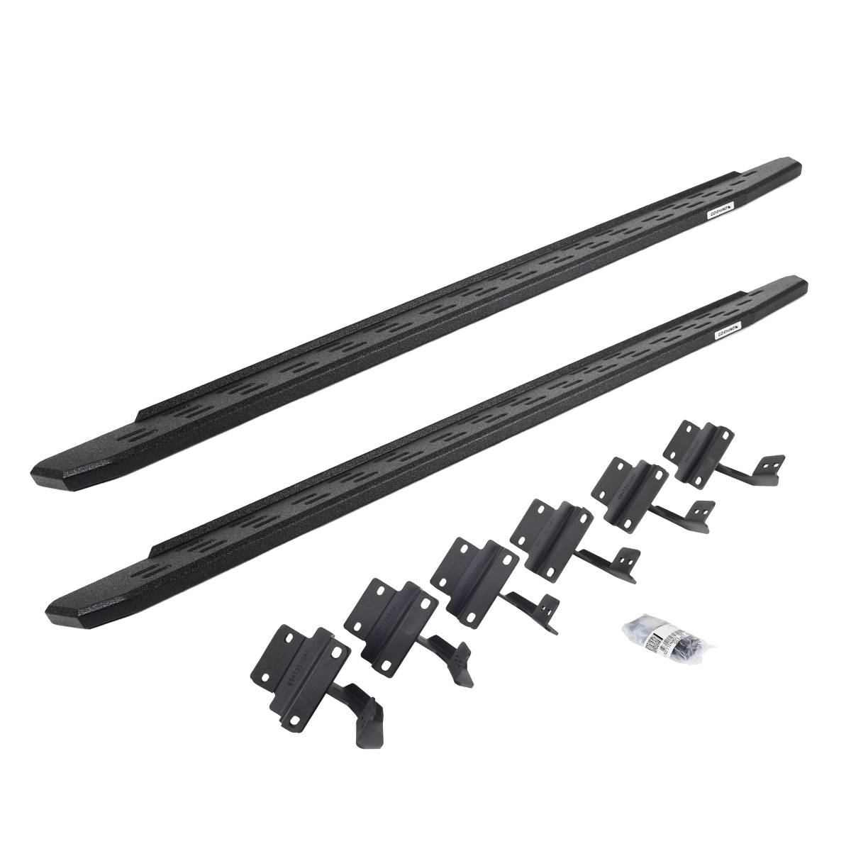 Meet the third edition of the legendary Go Rhino RB Series of running boards: the RB30. The RB30 is the next generation of Raptor-inspired design that will make your truck, Jeep, Bronco or SUV stand out from the crowd. With its aggressive, stylish appearance, this cab-length, bolt-on side step provides maximum traction and features an open flow-through design that prevents mud, ice, and snow from accumulating. The corrosion-resistant 16-gauge steel step mounts tightly to factory mounting points along the lower rocker panel, providing plenty of clearance for off-roading, and it’s strong enough to support 300 lbs. per stepping surface for 600 lbs. per board. The RB30 Running Board is 7” wide for most its length before it tapers (compared to 5” wide for the Slim Line version). All RB Series Running Boards are available in Textured Black Powder Coat or Protective Bedliner finish, made in North America and offer a limited lifetime warranty against manufacturer and material defects, with a 5-year warranty on the finish.