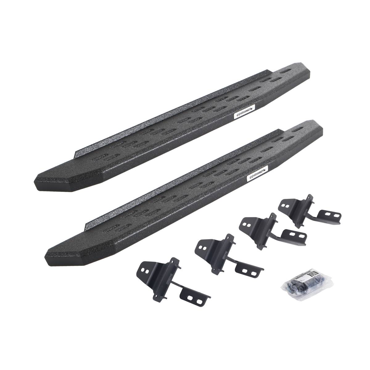Meet the third edition of the legendary Go Rhino RB Series of running boards: the RB30. The RB30 is the next generation of Raptor-inspired design that will make your truck, Jeep, Bronco or SUV stand out from the crowd. With its aggressive, stylish appearance, this cab-length, bolt-on side step provides maximum traction and features an open flow-through design that prevents mud, ice, and snow from accumulating. The corrosion-resistant 16-gauge steel step mounts tightly to factory mounting points along the lower rocker panel, providing plenty of clearance for off-roading, and it’s strong enough to support 300 lbs. per stepping surface for 600 lbs. per board. The RB30 Running Board is 7” wide for most its length before it tapers (compared to 5” wide for the Slim Line version). All RB Series Running Boards are available in Textured Black Powder Coat or Protective Bedliner finish, made in North America and offer a limited lifetime warranty against manufacturer and material defects, with a 5-year warranty on the finish.