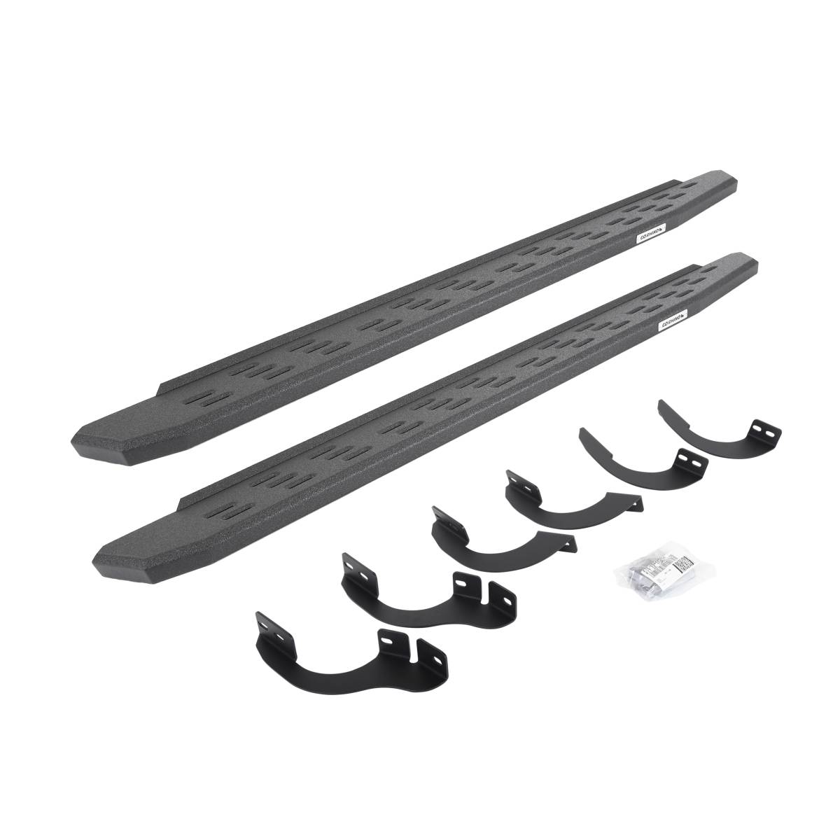 Meet the third edition of the legendary Go Rhino RB Series of running boards: the RB30. The RB30 is the next generation of Raptor-inspired design that will make your truck, Jeep, Bronco or SUV stand out from the crowd. With its aggressive, stylish appearance, this cab-length, bolt-on side step provides maximum traction and features an open flow-through design that prevents mud, ice, and snow from accumulating. The corrosion-resistant 16-gauge steel step mounts tightly to factory mounting points along the lower rocker panel, providing plenty of clearance for off-roading, and it’s strong enough to support 300 lbs. per stepping surface for 600 lbs. per board. The RB30 Running Board is 7” wide for most its length before it tapers (compared to 5” wide for the Slim Line version). All RB Series Running Boards are available in Textured Black Powder Coat or Protective Bedliner finish, made in North America and offer a limited lifetime warranty against manufacturer and material defects, with a 5-year warranty on the finish.