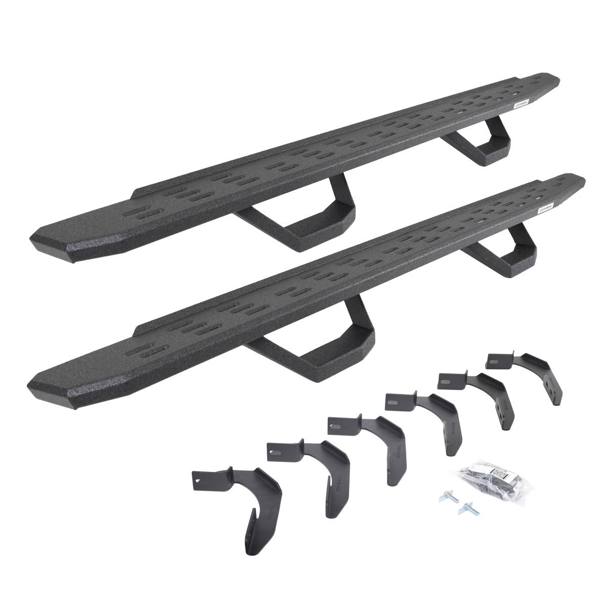 Meet the third edition of the legendary Go Rhino RB Series of running boards: the RB30. The RB30 is the next generation of Raptor-inspired design that will make your truck, Jeep, Bronco or SUV stand out from the crowd. With its aggressive, stylish appearance, this cab-length, bolt-on side step provides maximum traction and features an open flow-through design that prevents mud, ice, and snow from accumulating. The corrosion-resistant 16-gauge steel step mounts tightly to factory mounting points along the lower rocker panel, providing plenty of clearance for off-roading, and it’s strong enough to support 300 lbs. per stepping surface for 600 lbs. per board. Matching drop steps will make entering and exiting lifted vehicles even easier. The RB30 Running Board is 7” wide for most its length before it tapers (compared to 5” wide for the Slim Line version). All RB Series Running Boards are available in Textured Black Powder Coat or Protective Bedliner finish, made in North America and offer a limited lifetime warranty against manufacturer and material defects, with a 5-year warranty on the finish.