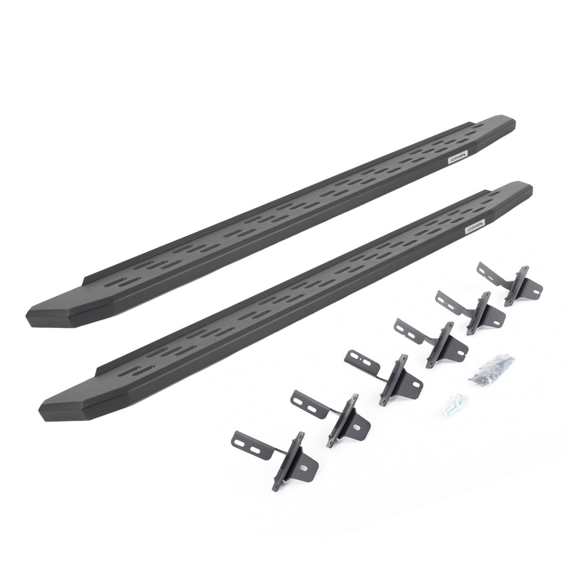 Meet the third edition of the legendary Go Rhino RB Series of running boards: the RB30. The RB30 is the next generation of Raptor-inspired design that will make your truck, Jeep, Bronco or SUV stand out from the crowd. With its aggressive, stylish appearance, this cab-length, bolt-on side step provides maximum traction and features an open flow-through design that prevents mud, ice, and snow from accumulating. The corrosion-resistant 16-gauge steel step mounts tightly to factory mounting points along the lower rocker panel, providing plenty of clearance for off-roading, and it’s strong enough to support 300 lbs. per stepping surface for 600 lbs. per board. The RB30 Running Board is 7” wide for most its length before it tapers (compared to 5” wide for the Slim Line version). All RB Series Running Boards are available in Textured Black Powder Coat or Protective Bedliner finish, made in North America and offer a limited lifetime warranty against manufacturer and material defects, with a 5-year warranty on the finish.