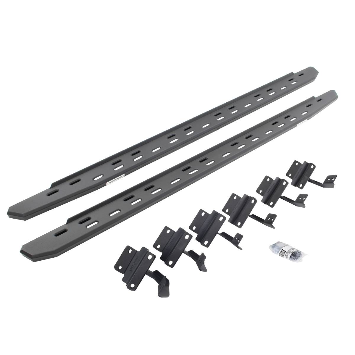 Meet the third edition of the legendary Go Rhino RB Series of running boards: the RB30. The RB30 is the next generation of Raptor-inspired design that will make your truck, Jeep, Bronco or SUV stand out from the crowd. With its aggressive, stylish appearance, this cab-length, bolt-on side step provides maximum traction and features an open flow-through design that prevents mud, ice, and snow from accumulating. The corrosion-resistant 16-gauge steel step mounts tightly to factory mounting points along the lower rocker panel, providing plenty of clearance for off-roading, and it’s strong enough to support 300 lbs. per stepping surface for 600 lbs. per board. The RB30 Running Board is 7” wide for most its length before it tapers (compared to 5” wide for the Slim Line version). All RB Series Running Boards are available in Textured Black Powder Coat or Protective Bedliner finish, made in North America and offer a limited lifetime warranty against manufacturer and material defects, with a 5-year warranty on the finish.
