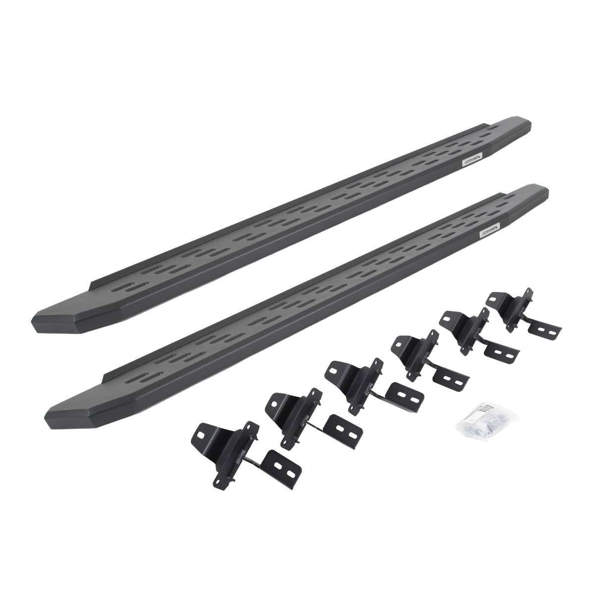 Meet the third edition of the legendary Go Rhino RB Series of running boards: the RB30. The RB30 is the next generation of Raptor-inspired design that will make your truck, Jeep, Bronco or SUV stand out from the crowd. With its aggressive, stylish appearance, this cab-length, bolt-on side step provides maximum traction and features an open flow-through design that prevents mud, ice, and snow from accumulating. The corrosion-resistant 16-gauge steel step mounts tightly to factory mounting points along the lower rocker panel, providing plenty of clearance for off-roading, and it’s strong enough to support 300 lbs. per stepping surface for 600 lbs. per board. The RB30 Running Board is 7” wide for most its length before it tapers (compared to 5” wide for the Slim Line version). All RB Series Running Boards are available in Textured Black Powder Coat or Protective Bedliner finish, made in North America and offer a limited lifetime warranty against manufacturer and material defects, with a 5-year warranty on the finish.