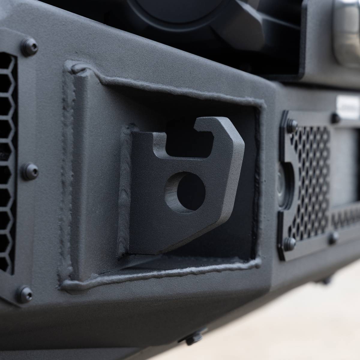 - Industry standard winch mounting slots, for up to 12,000 pound capacity winch, cut directly into the top surface