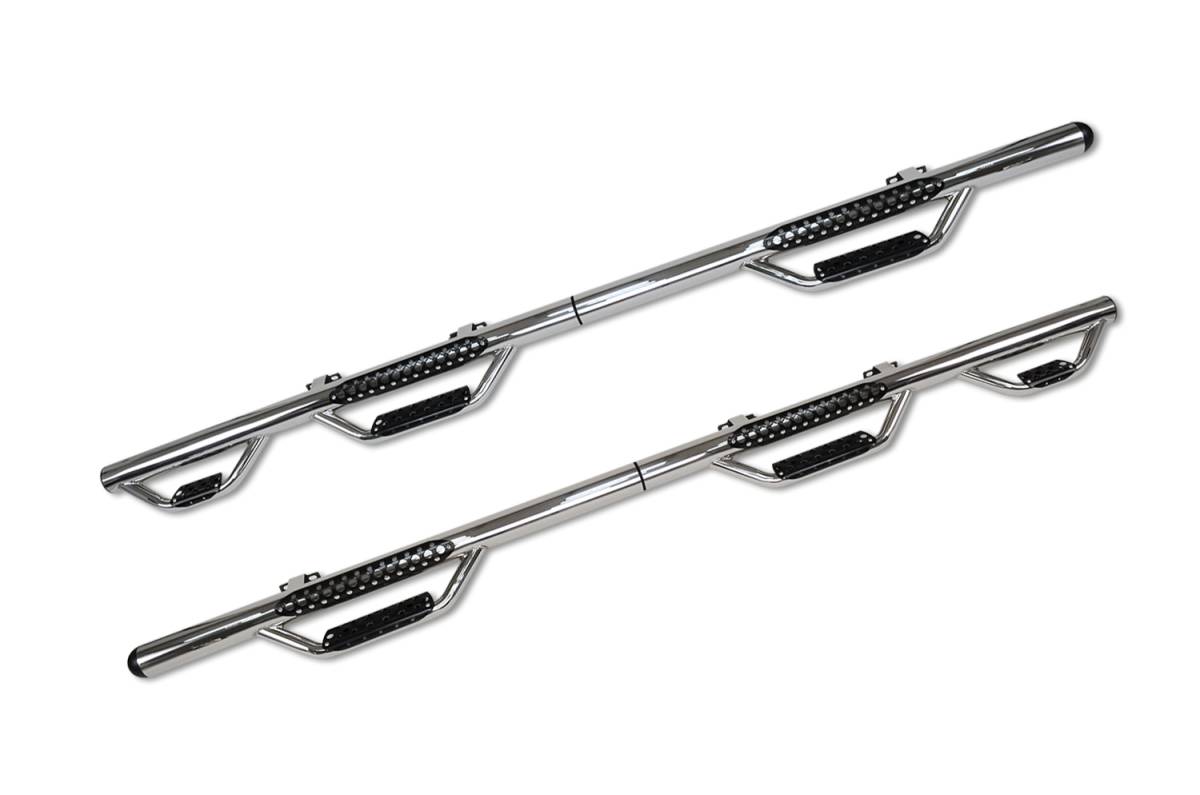The Dominator D3 is made of 3" round tubing and features 3 drop-down steps that run from the front to real wheel wells. Lifetime warranty on materials, construction and Finish.