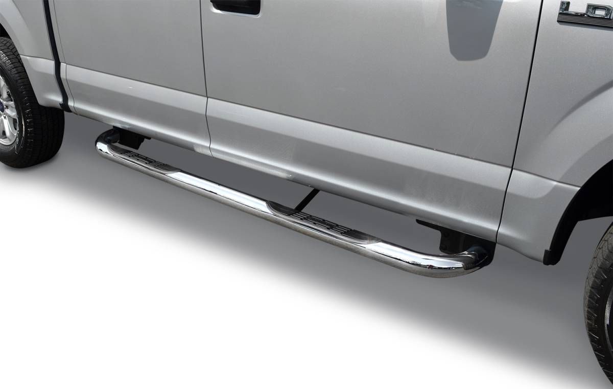 The 4000 Series 3" Round Side Steps are a pair of classic round tube steps with a 90° bend at each end fo the step bar. High-traction composite step pads makes stepping in and out of your truck or SUV safe and easy. Installation of the running boards is simple with no cutting or drilling required on most vehicles. Model #4155PS 4000 Series 3" Round step bars come with a Limited Lifetime warranty on materials and construction and a 5 year warranty on the Semi-Gloss Finish.